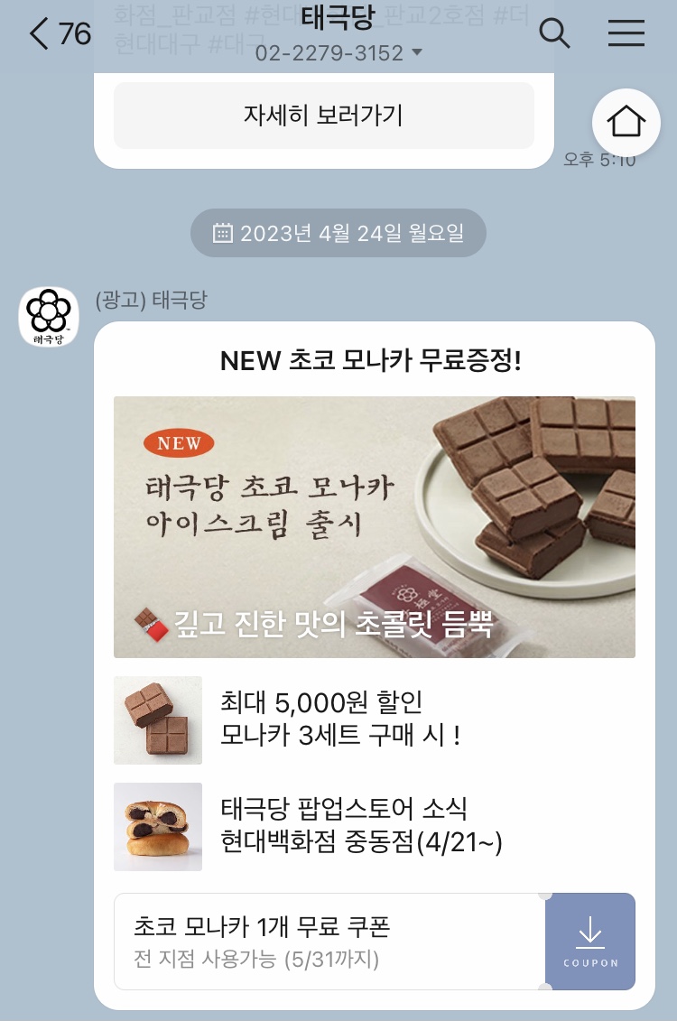 태극당 카톡 친구 추가해 뒀었는데