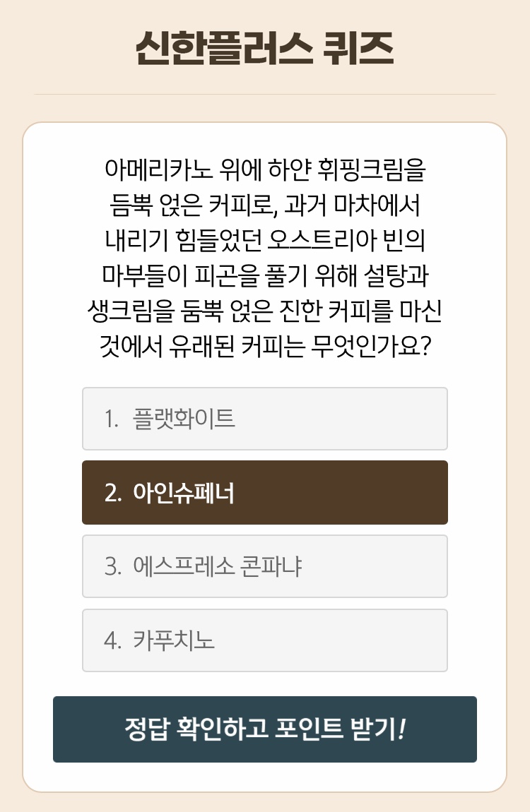 아메리카노 위에 하얀 휘핑크림을 듬뿍 얹은 커피로, 과거 마차에서 내리기 힘들었던 오스트리아 빈의 마부들이 피곤을 풀기 위해 설탕과 생크림을 듬뿍 얹은 진한 커피를 마신것에서 유래된 커피는 무엇인가요?