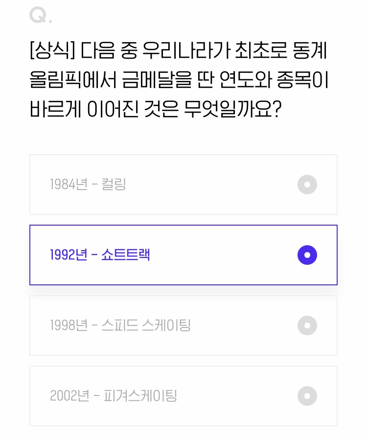 [상식] 다음 중 우리나라가 최초로 동계올림픽에서 금메달을 딴 연도와 종목이 바르게 이어진 것은 무엇일까요?