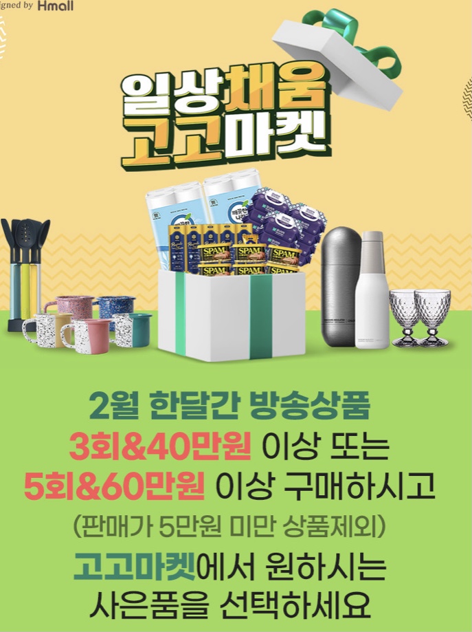 [현대홈쇼핑] 현대홈쇼핑에서는 2월 한달간 방송상품 3회&40만원 이상 또는 5회&60만원 이상 구매시 원하는 사은품응 직접 선택 할 수 있는 ㅇㅇ 마켓을 운영 중입니다. 이 마켓의 이름을 무엇일까요?