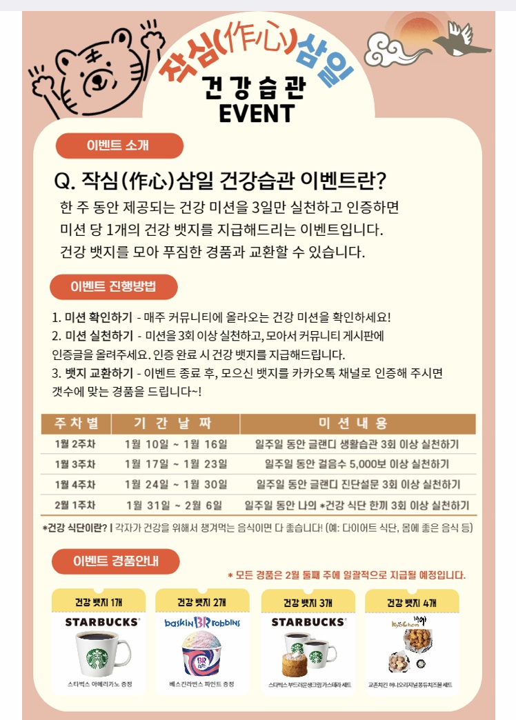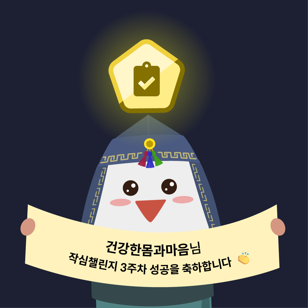 한주한주 어플내 커뮤니티에 미션을 인증하면 이렇게 귀여운 작심챌린지 뱃지를 나의 닉네임을 넣어 전달해주신다 헤헤 긔여어 ㅎㅎ