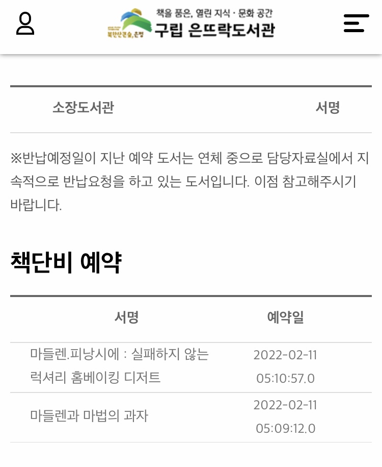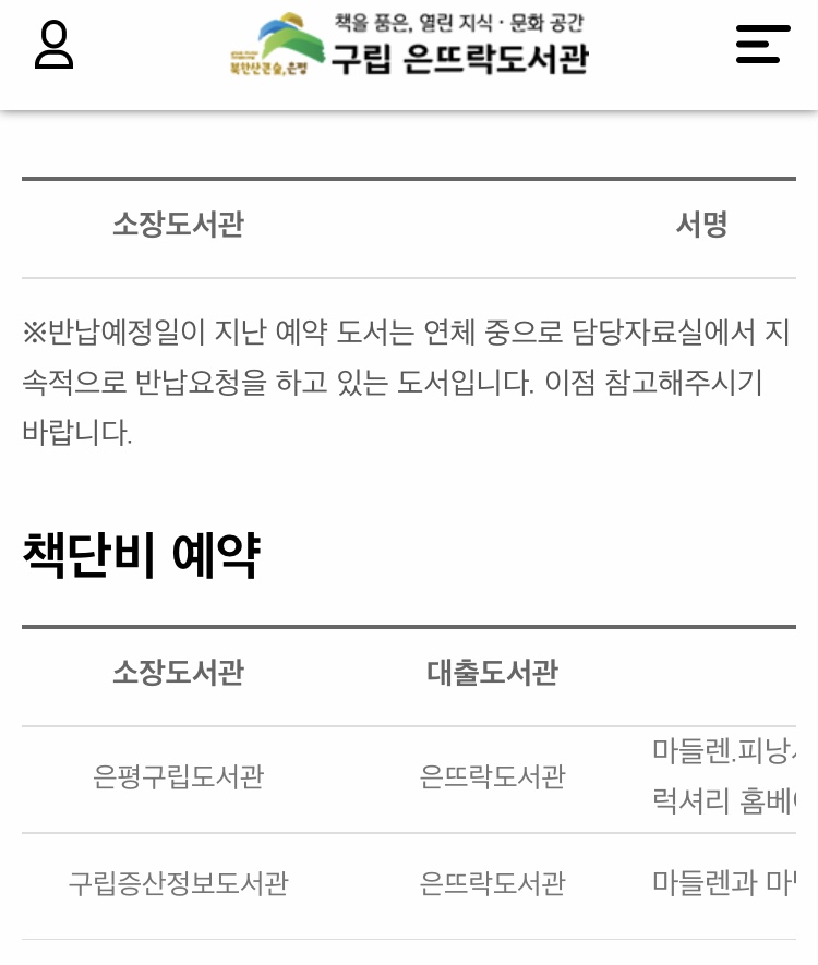 위에보면 책단비 도서 예약현황에 소장도서관과 대출도서관이 다른것을 볼수가 있다. 이렇게 편리한 기능을... 난 매법 도서관을 찾아가서 도보로... 구하러 다녔지요. 이 서비스를 이용하기 시작한지 몇달안됐다 ㅠㅠ ㅋㅋ 나처럼 모르는 사람이 또 있을랑가?