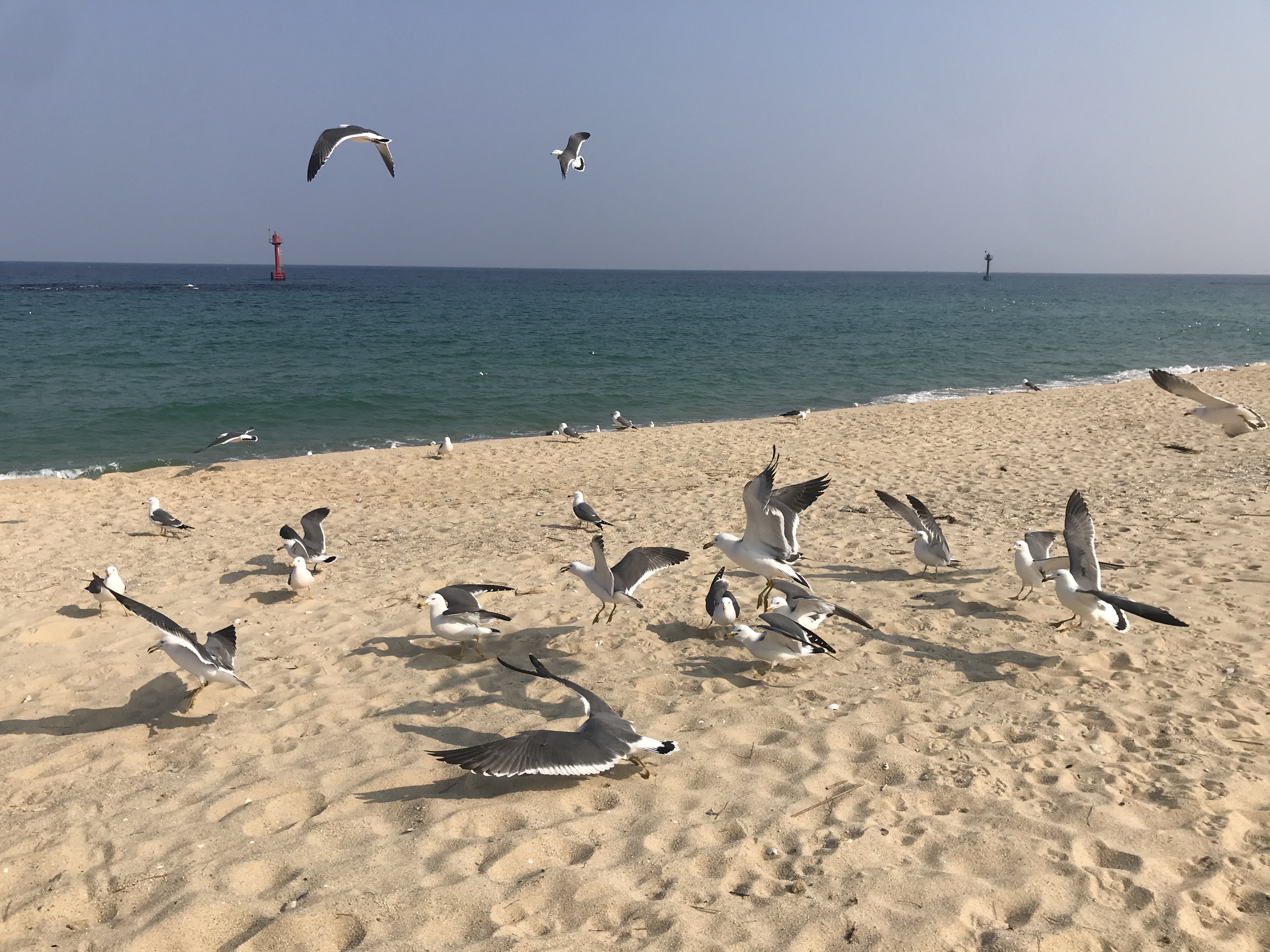 갈매기들 다 어디갔나 했더니 이 해변에 모여있구만~
