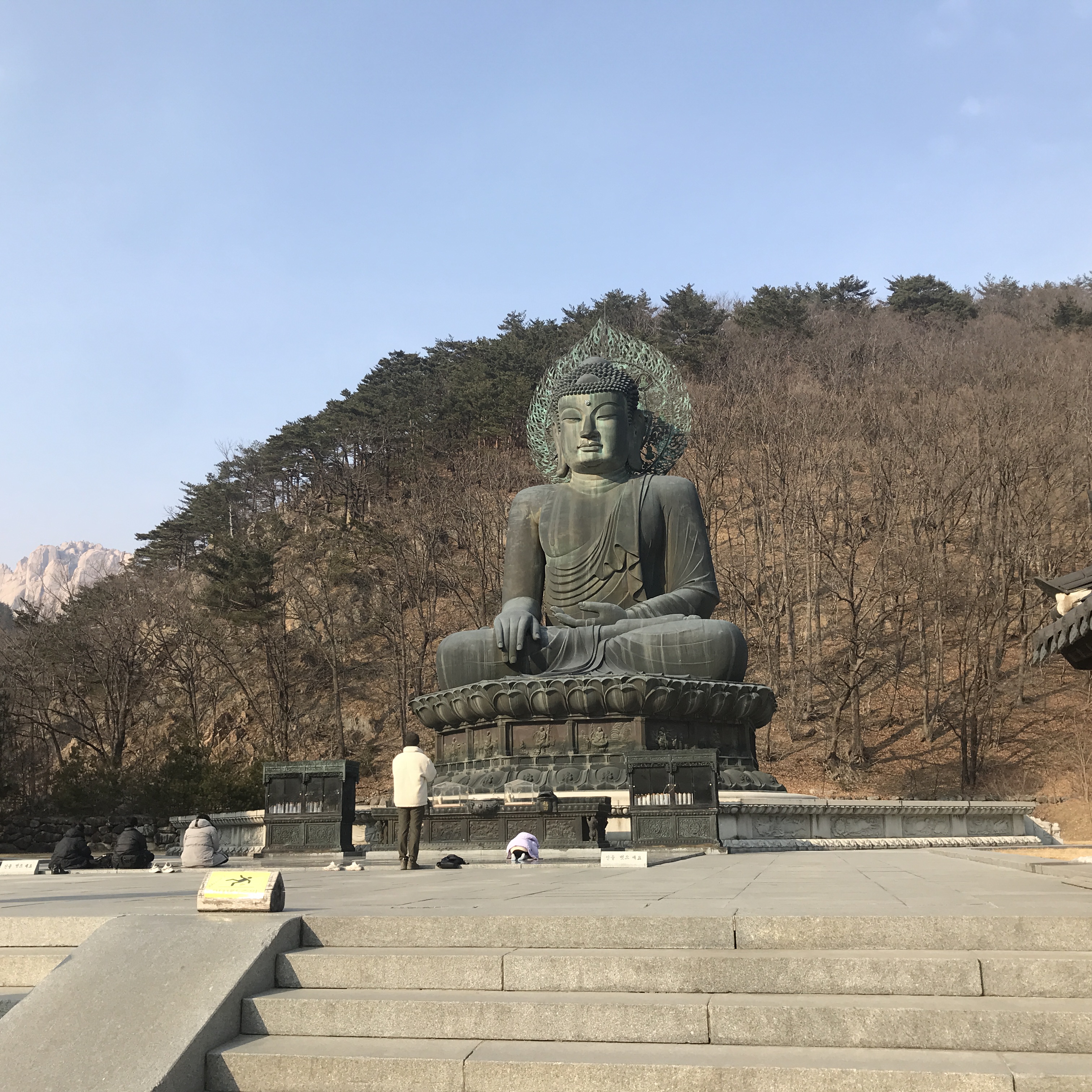케이블카 기다리는 동안 신흥사를 지키시는 부처님께 인사드리기