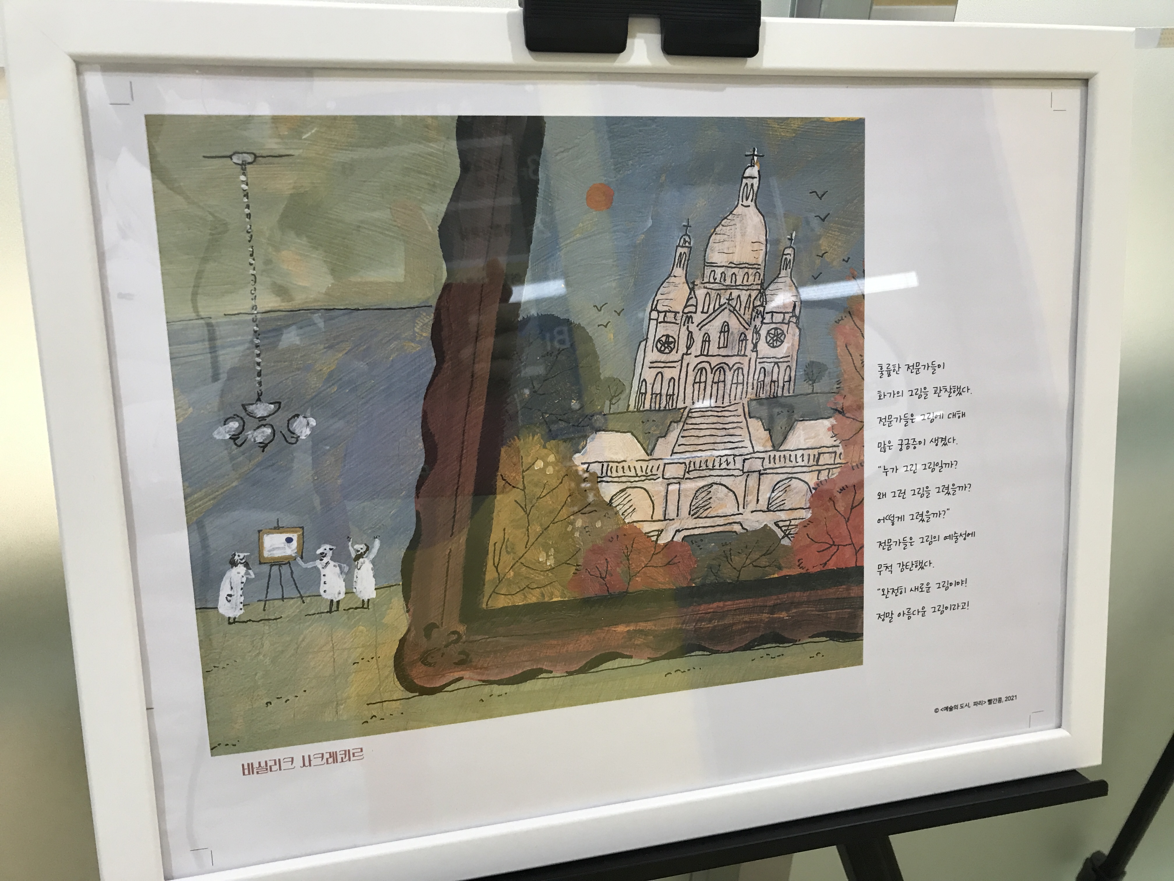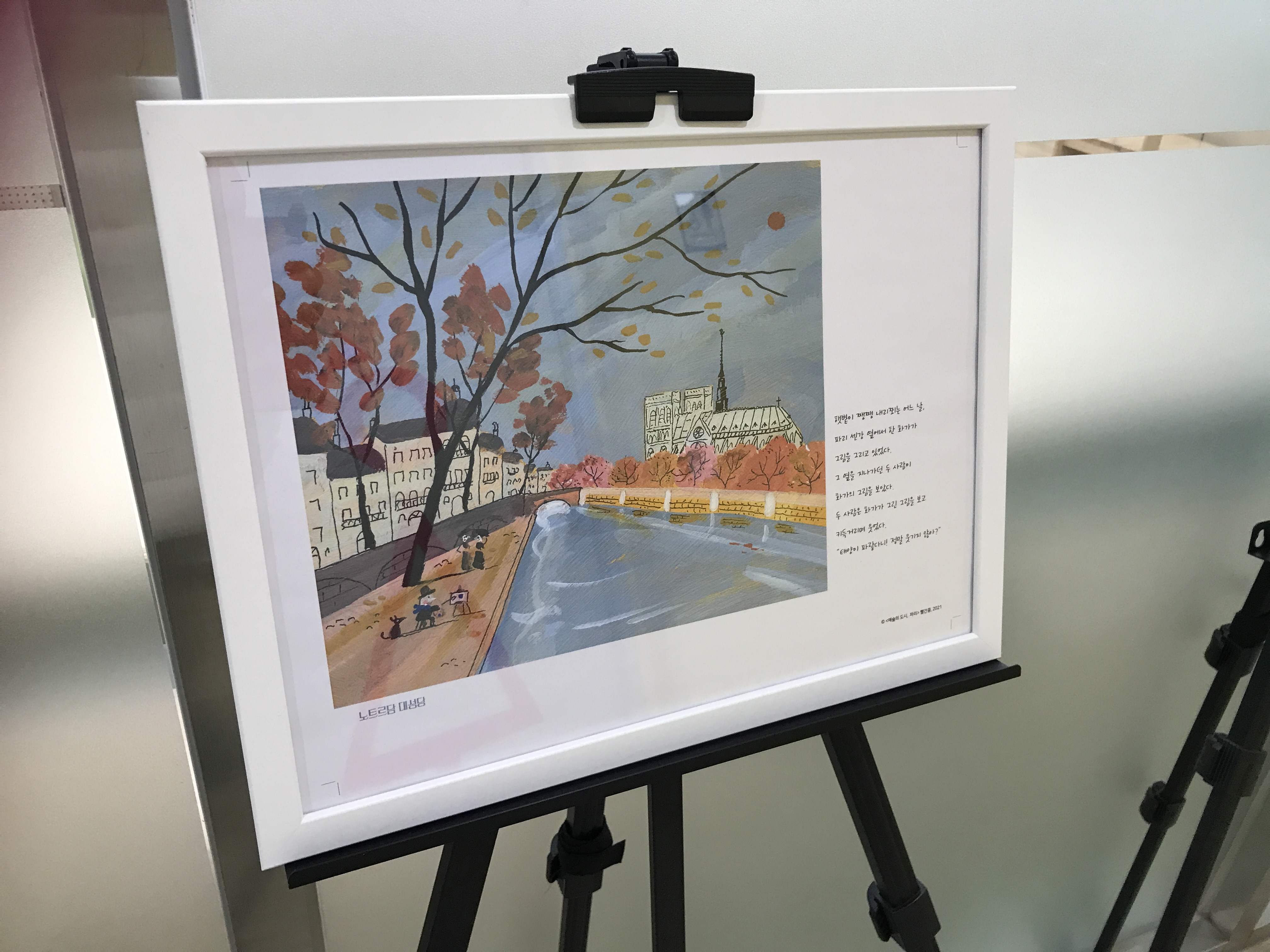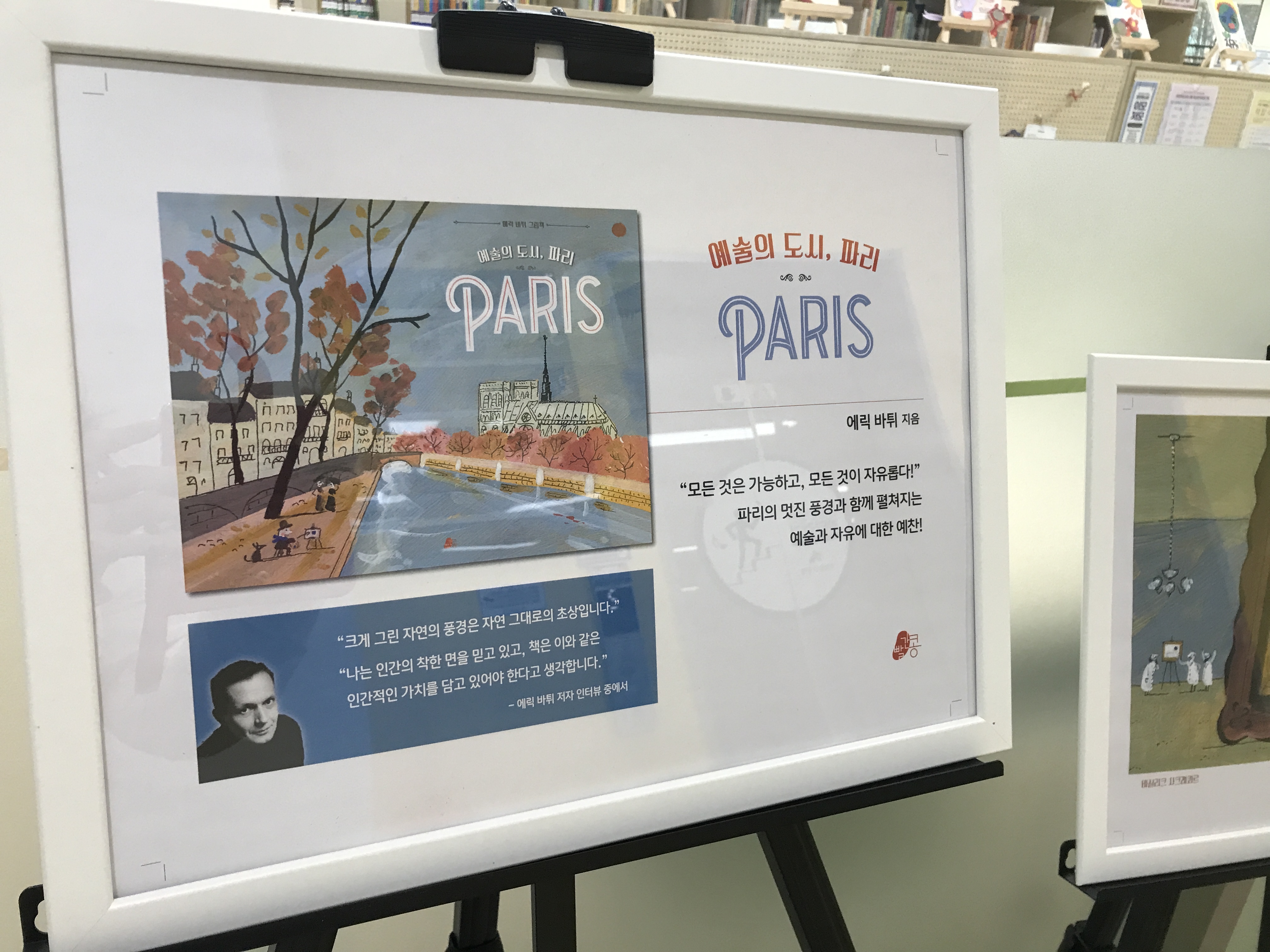 은뜨락도서관에 책두레 예약해둔 도서가 도착했다 카톡이 와서 요가 가는길에 들렀는데, 1층에 파리를 담은 그림전이 전시되고 있었다.
