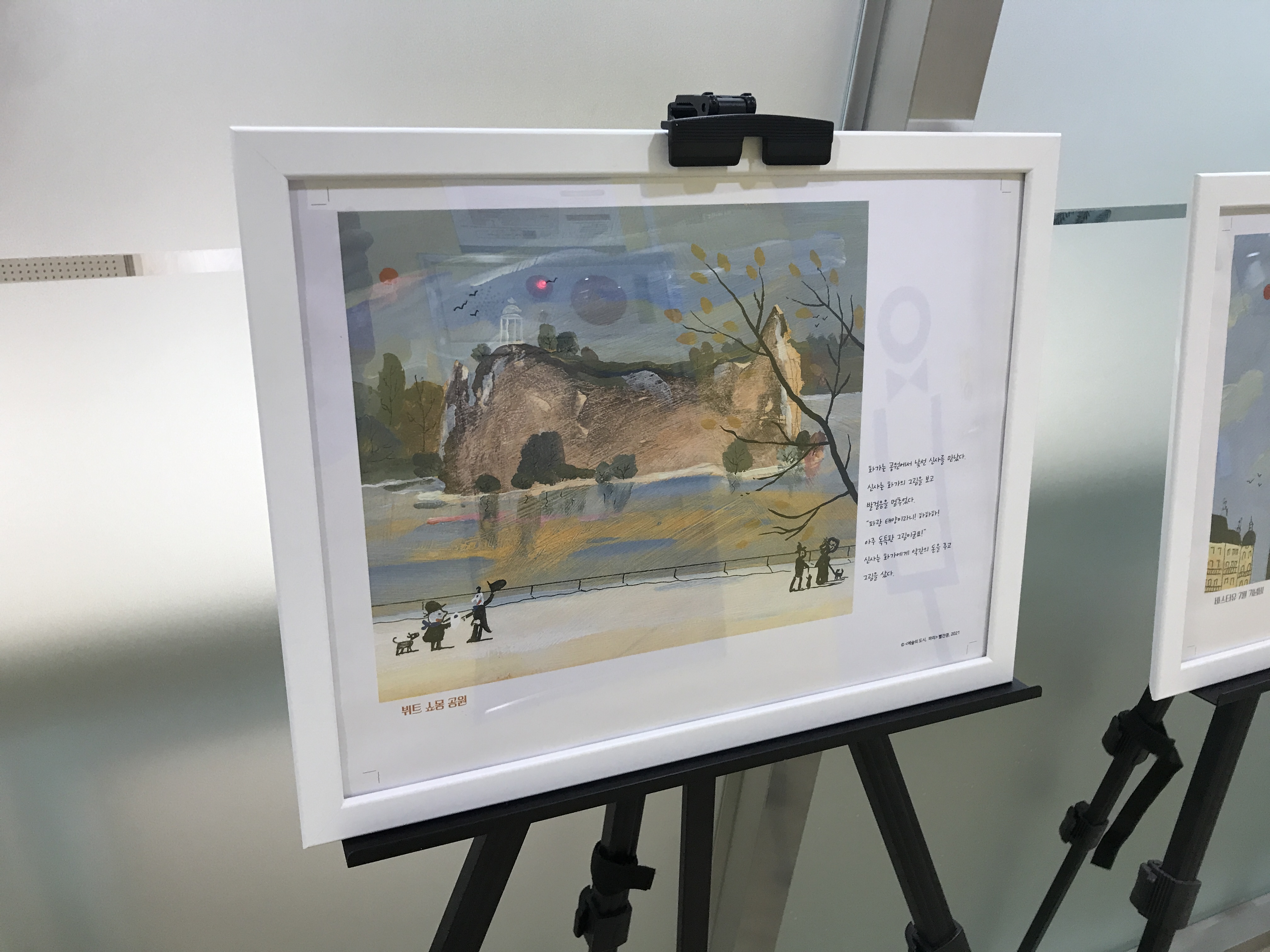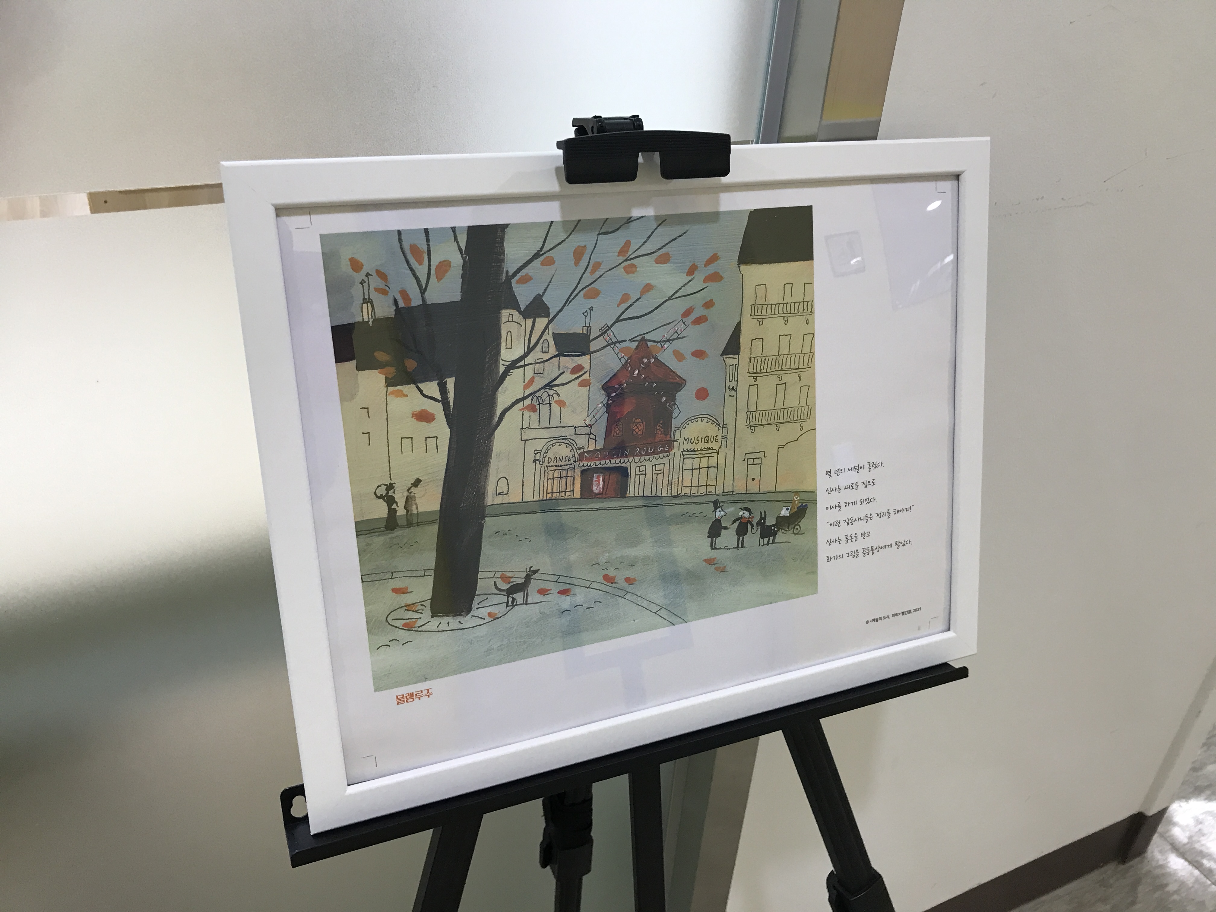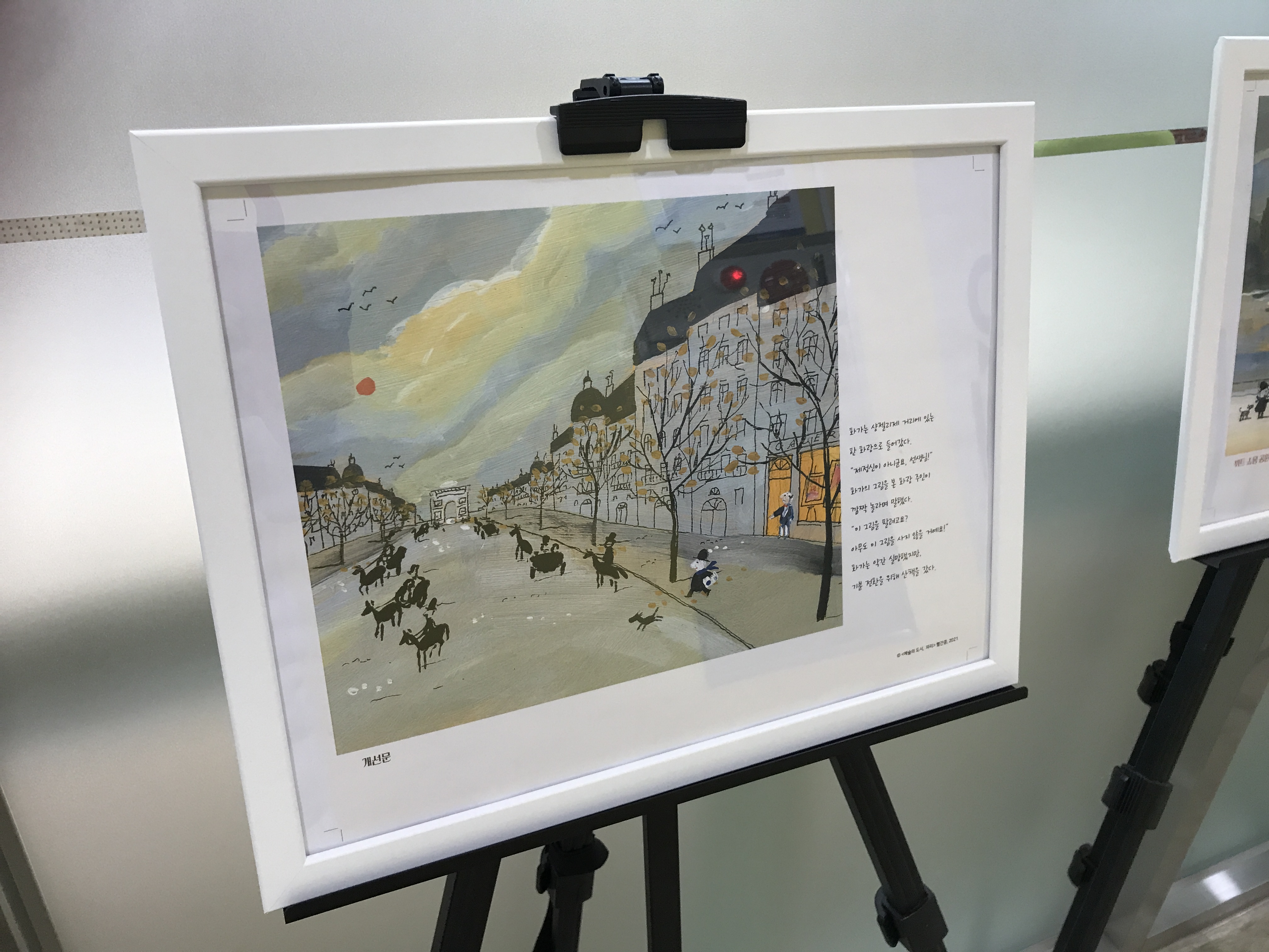 은뜨락도서관에 책두레 예약해둔 도서가 도착했다 카톡이 와서 요가 가는길에 들렀는데, 1층에 파리를 담은 그림전이 전시되고 있었다.
