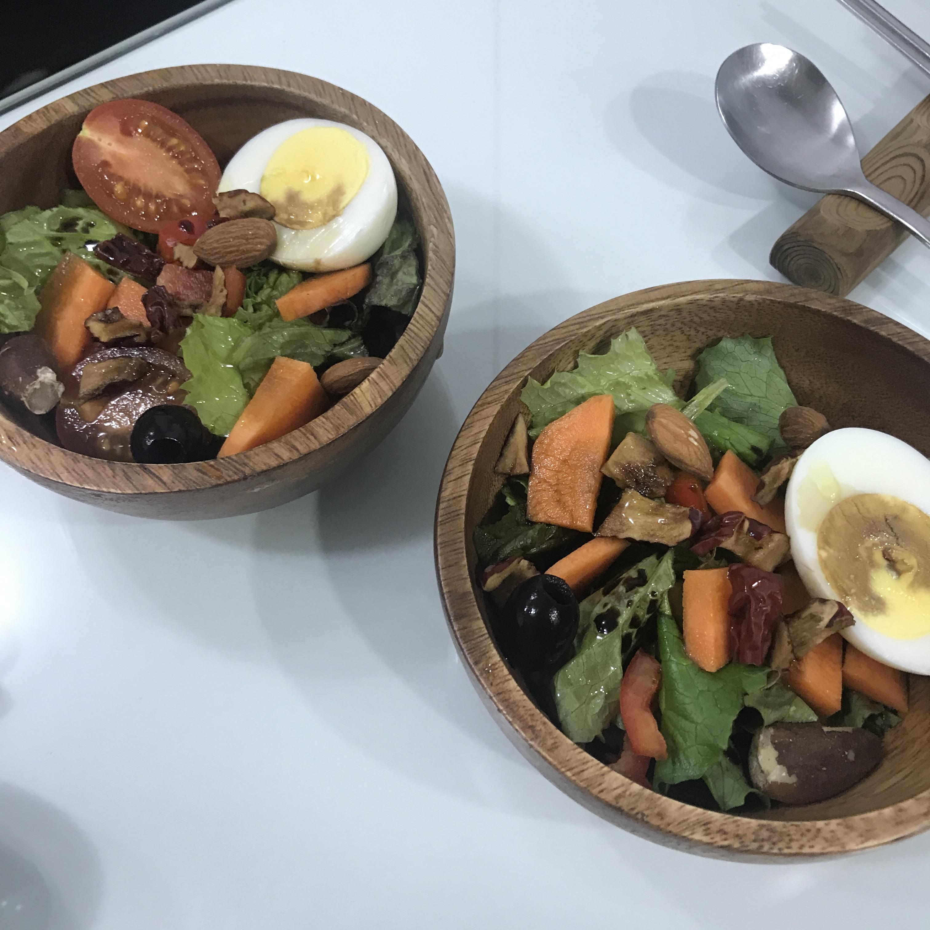 재료 : 야채샐러드 구운아몬드 브라질너트 블랙올리브 삶은달걀(동물복지) 당근 건대추 방울토마토(난 패스) 올리브오일 발사믹식초